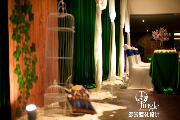 室内也想要森系? 当然也是可以滴 想要简约不俗气?还要便宜不低端? 当日也是没问题 用绿色白色的布幔色彩搭配,本已显现一种浪漫静谧的感觉 加上绢花的装饰,鲜花的点缀 一系列主题相关的小装饰品 简单 清新 而且价格不贵 满足了效果与价格之间的平衡